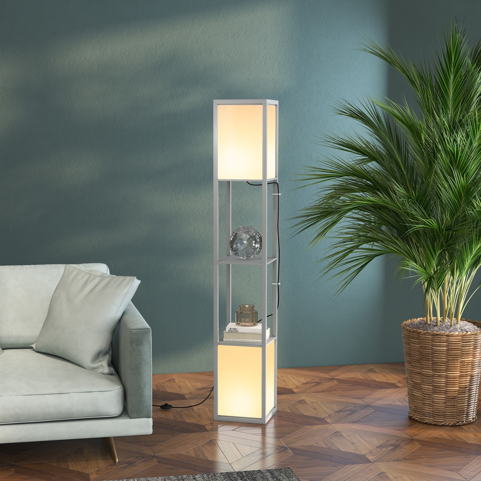 HOMCOM Shelf Floor Lamp with Dual Light, for Living Room, Bedroom, Grey, Light Grey