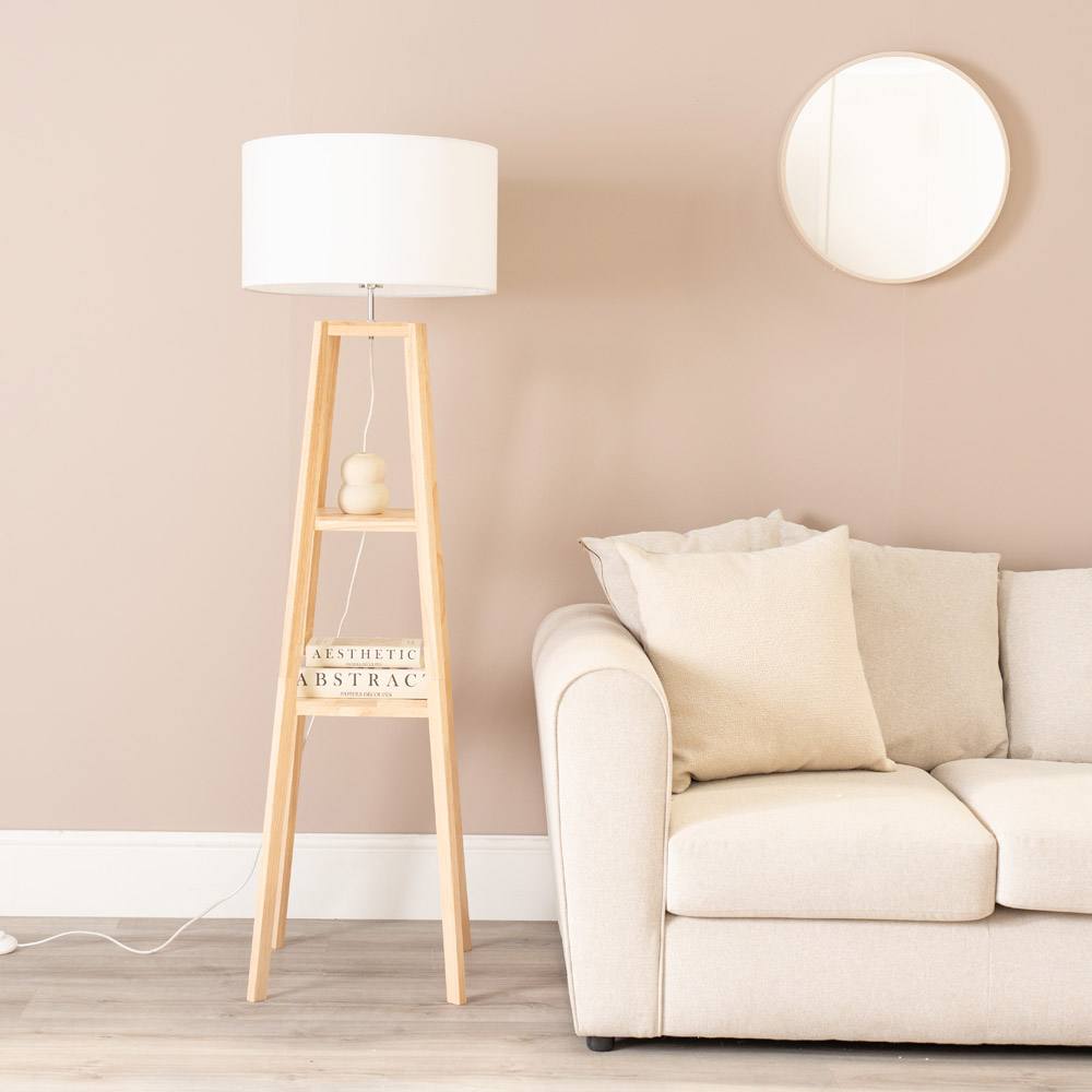 Shelf Floor Lamp Base Cream Wood Standard Living Room Light Free Standing
