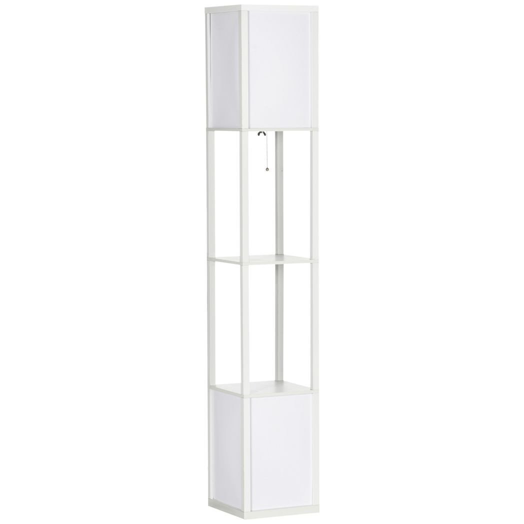 Shelf Floor Lamp White MDF+PP+Cotton 26x26x156cm with 2 Shelves Tall Corner E27