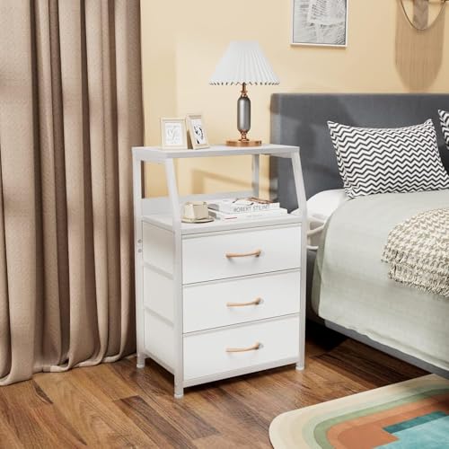 Cachpib Bedside Table Side End Table with 3 Drawers & Open Shelf Nightstand Chest of Drawers Storage Unit for Living Room, Bedroom, 41x29x72Cm