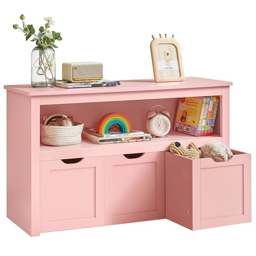 VASAGLE Toy Storage Unit, Children's Shelf, Wardrobe, Chest of Drawers with 3 Storage Wheels, for Living Room, Bedroom, Playroom, 30 x 102 x 60 cm, Candy Pink LHS380SA01