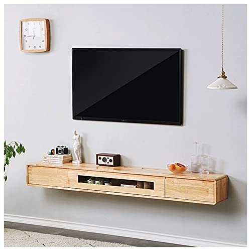Uvency Floating Tv Stand, Wall-Mounted Tv Cabinet Storage Shelf with 2 Drawers, Pine Wood, Wall-Mounted Media Console, Set-Top Box Rack, Free up Space/100Cm