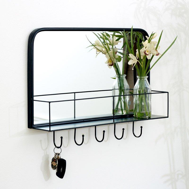 Charnwood Floating Storage Shelf with Metal Hooks and Three Storage Cubbies