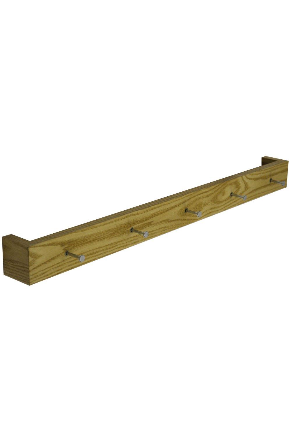 Hallowood Furniture Waverly Oak Coat Rack, Solid Wooden Wall Mounted Coat Hanger with 6 Metal Hooks for Jackets, Clothes & Hat, Light Oak Shelf with Hooks for Hallway, Entryway, and Living Room