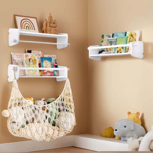 Nursery Book Shelves, 16.5 Inch Floating Book Shelves for Wall Set of 3, Baby Nursery Decor, Solid Wood Wall Mounted Shelves for Children's Room, Bedroom,Bathroom,Kitchen,and More (Natural White)