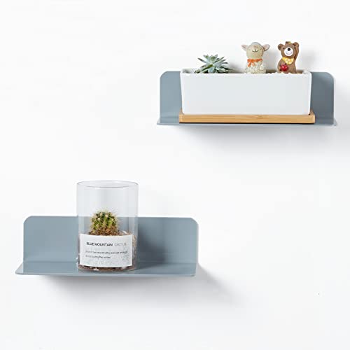 OAPRIRE Acrylic Floating Shelf Wall Mount 2 Pack, 9 Inch Small Adhesive Shelves for Children's Room, Bedroom, Bathroom, Kitchen with 4 Cable Clips, Easily Expand Wall Space - Grey