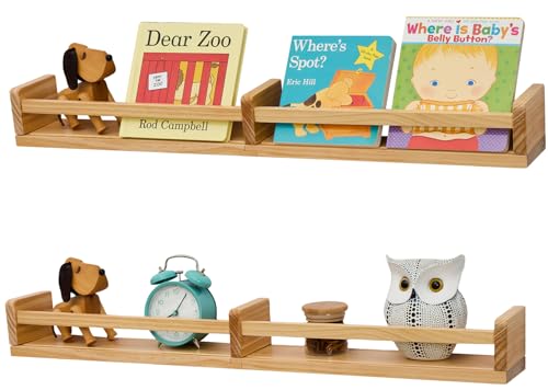 Gieanoo Nursery book shelf, Set of 2 Floating Shelves Solid Natural Wood 60cm bookshelf kids room Wall Mounted baby floating book shelves Wall decor for Children's Room,Bathroom,Kitchen