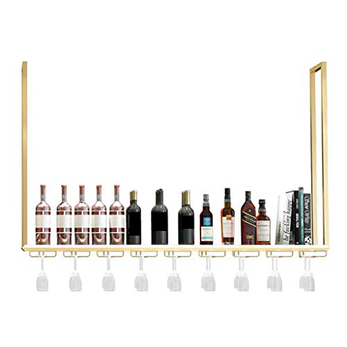 GFRWKCEX Wine Racks Bar Decor Home Bar Wall-Mounted,Metal Hanging Wine Glass Rack & Wine Bottle Holder,Stemware Storage Shelves,For Home/Kitchen/Cabinet,Gold Organizer Decor,Gold,100CM