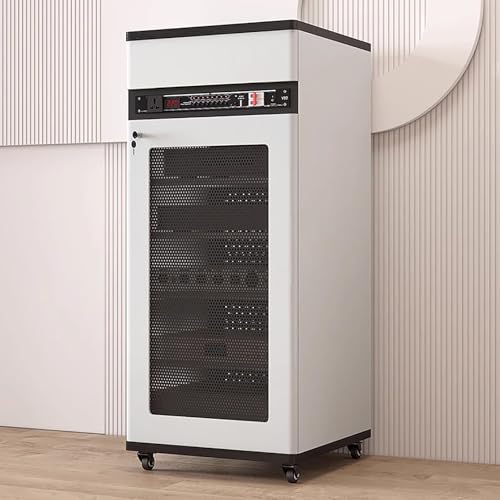 ZOCWJK Stand Adjustable Audio Cabinet with Shelves & Drawers, Movable Av Media Stand Tower Can Fast Heat Dissipation, Studio Office Video Components Organizer(White-L