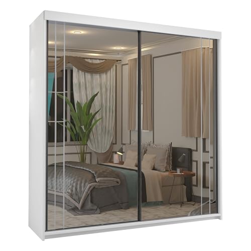 MN Furniture Brooklyn Double Door Sliding Wardrobe With Shelves, Drawers and Hanging Rails (White, 200 cm)