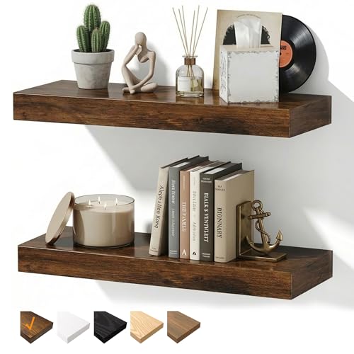 Supernic Set of 2 Floating Shelves 17in Rustic Wooden Shelves Decorative Wall Shelf Brackets Storage Book Shelves for Screw Mounted Shelf Bedroom, Bathroom, Living Room, Kitchen, Home Office
