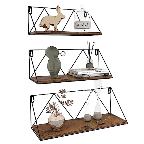 NCONCO 3 Pcs Floating Shelves, Rustic Wooden Shelves with Invisible Brackets Wall Mounted Display for Kitchen Living Room Bedroom Apartments Dorms