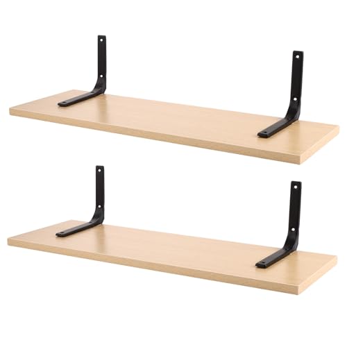 KovaScape Floating Shelves Set of 2, 60cm shelves for wall with Invisible Brackets, Heavy Duty Wooden Wall Mounted Shelf for Kitchen, Bathroom, Living Room, Bedroom