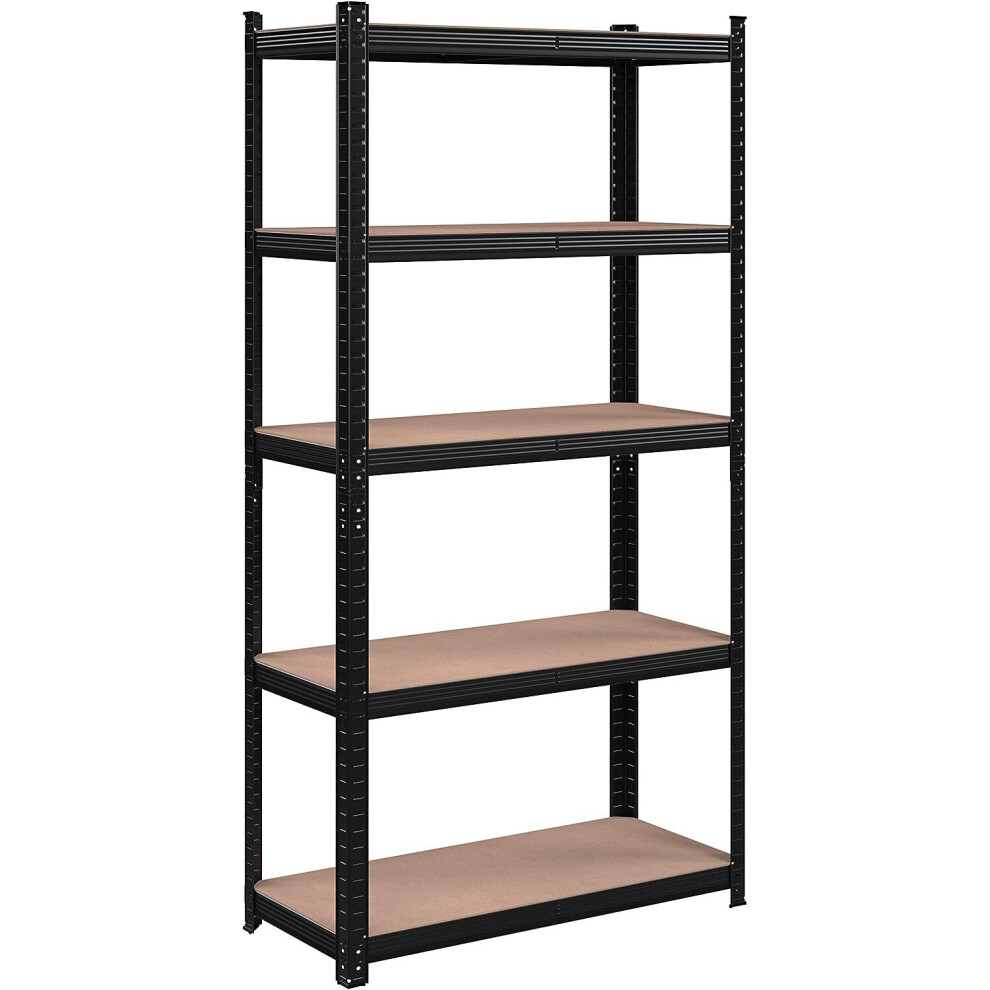 Royalswill Shelving Units Storage, Heavy Duty 5 Tier Black Garage Shelf Unit Metal Shelves Storage Boltless Rack, 875KG Capacity (175KG Per Shelf), Adjustable Heigh, Shed, Home & Office