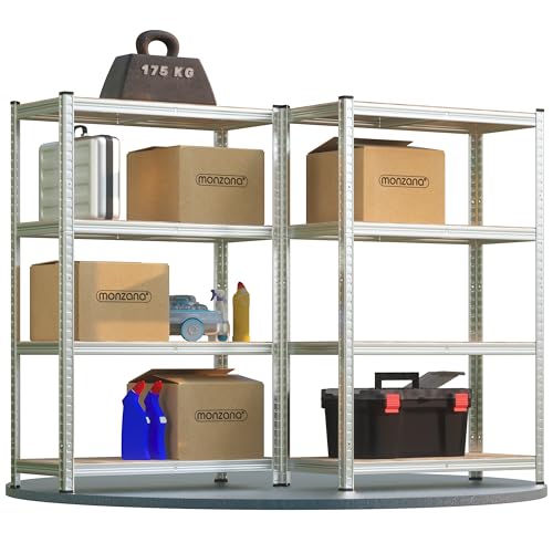Monzana® 2x 4 Tier Heavy Duty Garage Shelving Unit Shed Racking Galvanised Steel Metal Shelving Units Storage Shelves Warehouse Shed Rack Workshop Shelf Unit Garage Storage 160x90x40cm Silver