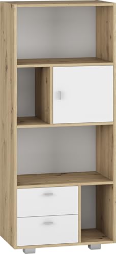 Tomostar Bookcase, Bookshelf Book Shelf Shelving Display Storage Unit with Drawers ALTA White 60x35x142 cm Solid Wood Pine