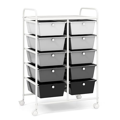 Kitchen cart Trolley Rolling 10 Drawers Storage Cart Multipurpose Mobile Organizer Shelving Unit with Handle Removable Drawers Lockable Wheels Utility for Home Beauty (Gradient Grey)