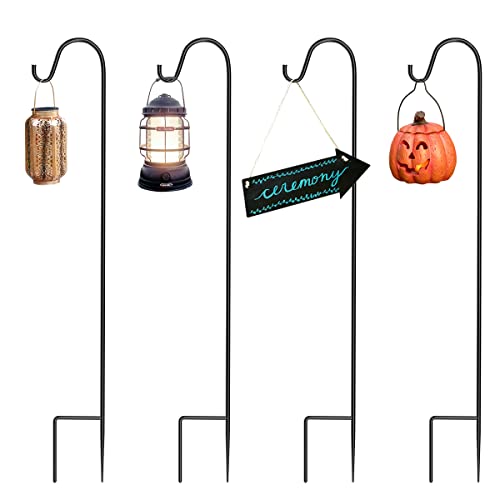 COSANSYS Shepherds Crooks for Lanterns, 4 Pack 100cm/39.37” Heavy Duty Shepherds Hooks for Lanterns with Metal Stake Base. Shepherds Hook Hanging Basket Bracket, Wedding Decorations, Black