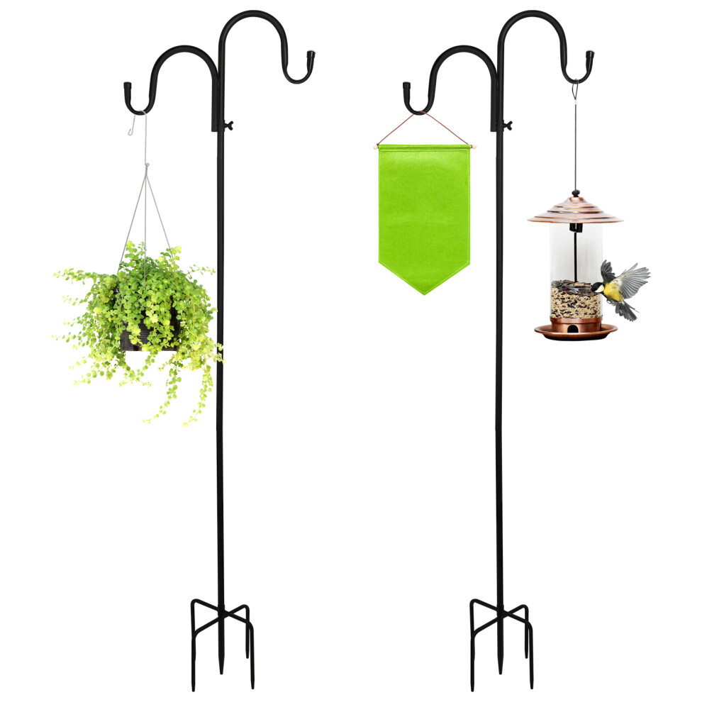 92 Inch Double Shepherds Hook/Bird Feeder Pole, for String Light, Height Adjustable