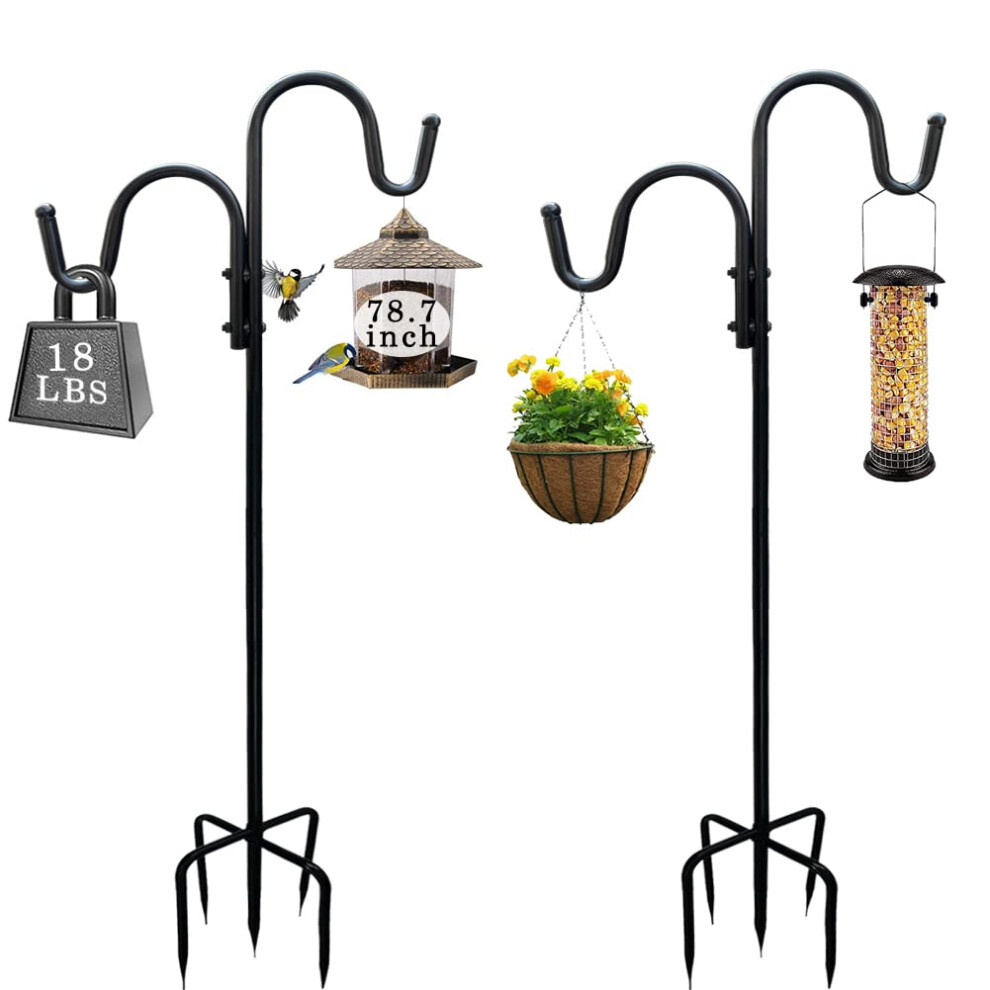 BYBAG Adjustable Double Shepherds Hook 78.7 Inch Tall Heavy Duty Hanging Two Sided Garden Pole for Bird-Feeder Lantern Plant-Hook Garden Plant Stand H