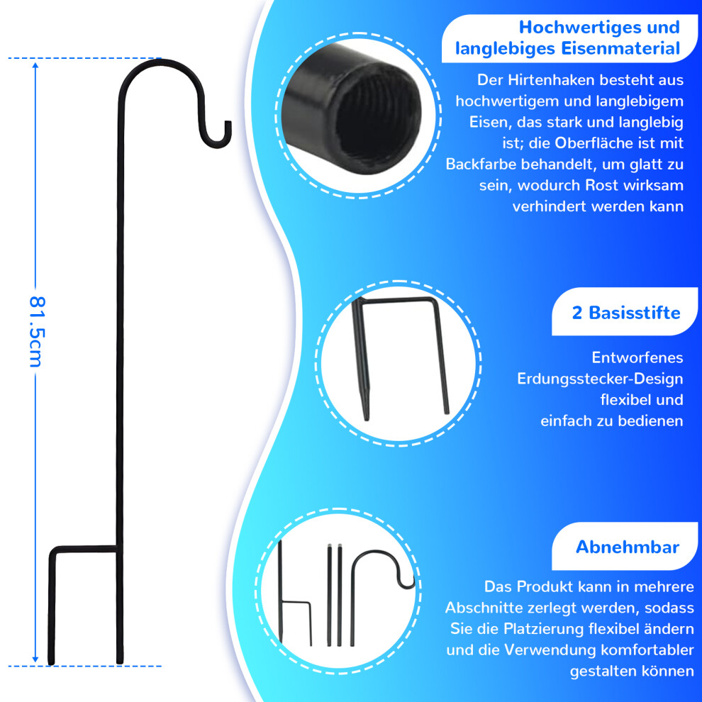 SEGNAYEN Shepherds Hook for Garden Lanterns, 81cm Adjustable Shepherds Crook with Metal Stake Base, Garden Hooks for Hanging Christmas Lights, Plant