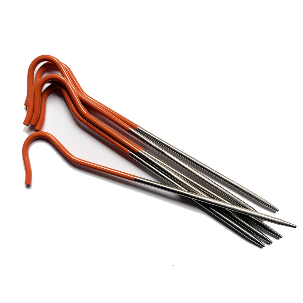 Vargo Titanium Shepherds Hook Stake with Fluorescent Orange Head 6 Pack | Camping Tent Stakes | 0.3 Ounces 8 Grams 6.5 L x 0.14 D 165 x 3.5mm | Ultr