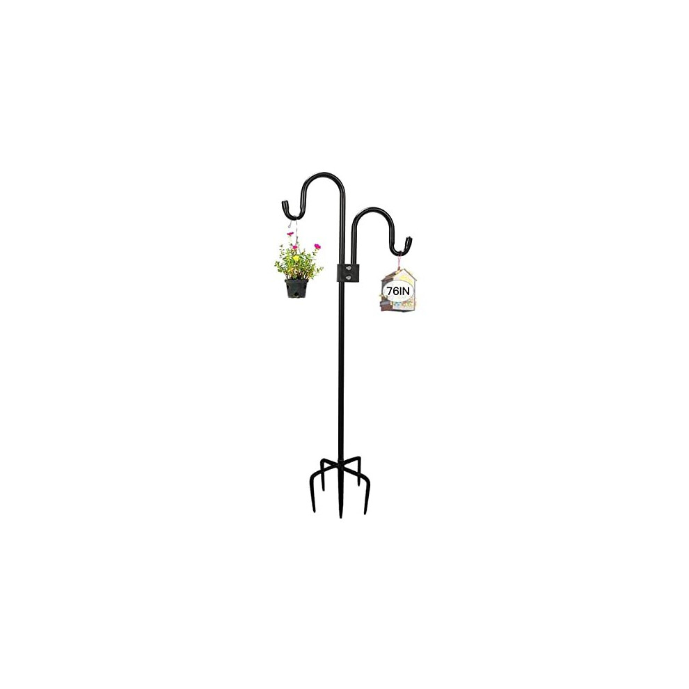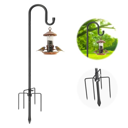 FEED GARDEN [Upgrade Version Adjustable Shepherds Hook Bird Feeder Pole with 7 Prongs Base, 76 Inch Tall Heavy Duty Outdoor Garden Poles for Hanging Bird Feeders, Plant Baskets, Black (1 Pack)