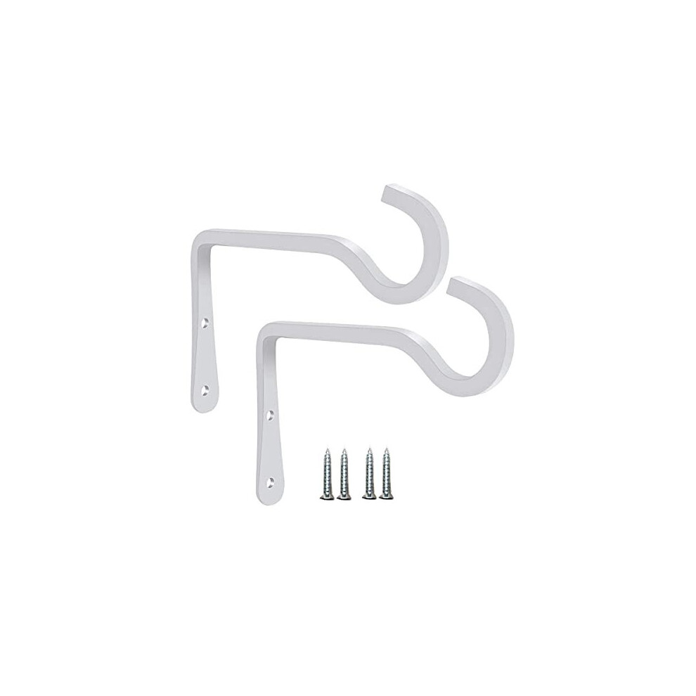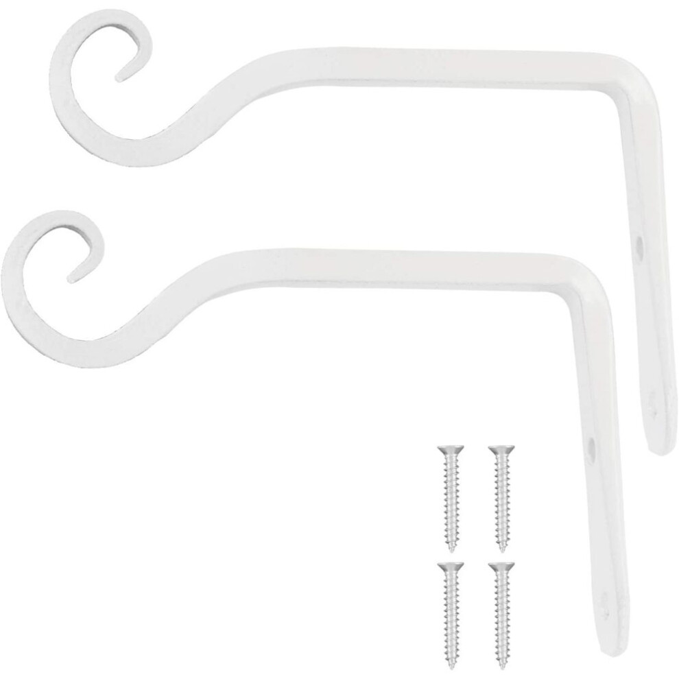 2Pcs White 15x10cm Decorative Iron Metal Wall Hook Plant Hanger Bracket Shepherds Hook Gardening Rustic Home Decor Indoor Outdoor Hook