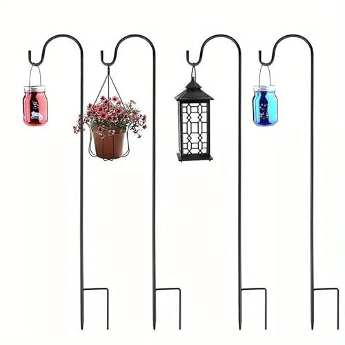 kangnuoxue Shepherds Crook Hooks, Garden Lantern Shepherd's Hook 80.5 CM Height Adjustable Festoon Pole,Metal Border Hook for Garden Lights, Lanterns, Plant Baskets, 4 Section Stitching (4)