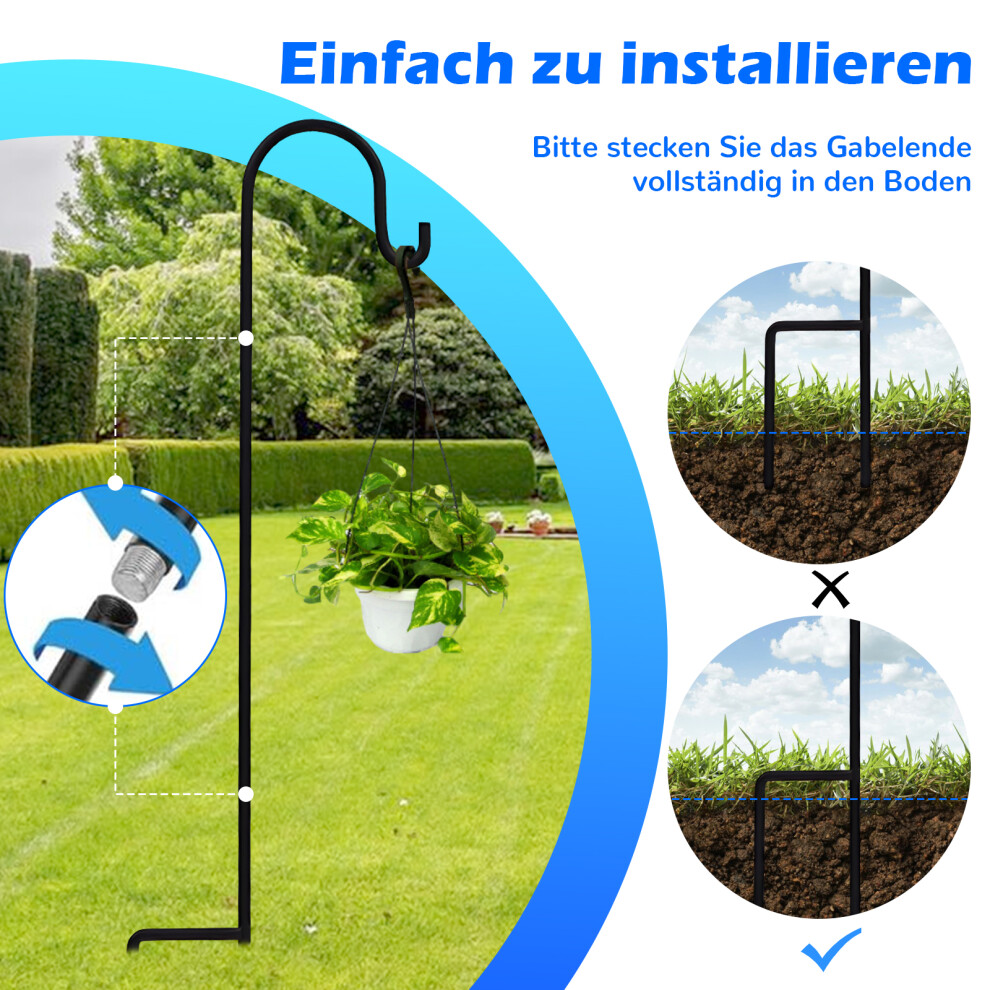 Heavy Duty Garden Hanger, Adjustable Shepherds Hook with Weather-resistant Steel, Decorative Freestanding Hook for Yard Decorations (Black, 160cm, Rem