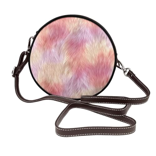 Soft Radiant Fur Pattern Sherbet Hues Women Round Crossbody Bags Leather Sling Bag Purse