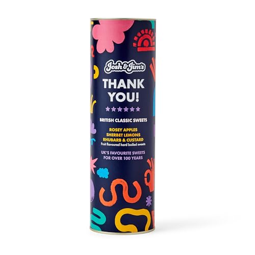 Josh & Jim's - 'Thank You' Classic British Sweets Assortment Gift, Rosey Apples, Sherbet Lemon, Rhubarb & Custard, 3x125g, 375g Multipack