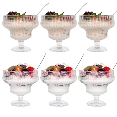 300 ml Glass Dessert Bowls with Spoons Set 12 Pcs, Crystal Ice Cream Bowls for Sundae Salad Snack Candy Fruit Milkshakes Sherbet Trifle Footed Bowl Parfait Glasses Decorative Shrimp Cocktail Cups