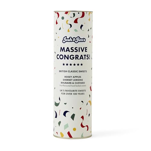 Josh & Jim's - 'Congratulations' Classic British Sweets Assortment Gift, Rosey Apples, Sherbet Lemon, Rhubarb & Custard, 3x125g, 375g Celebration Multipack