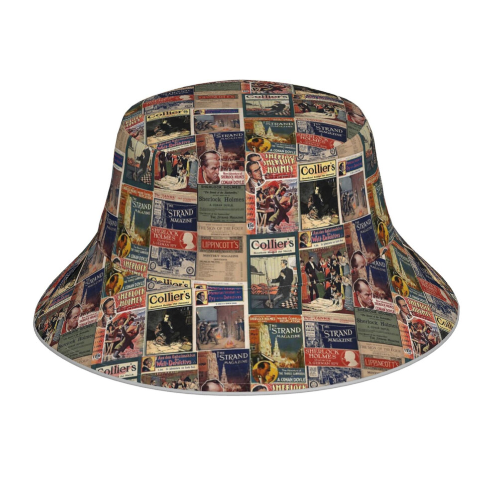 (Sherlock Holmes - Vintage Magazines_6314) Bucket Hat Reversible Reflective for Men Women - UV50+ Sun Protection Double-Sided Fishing Hat with 360 Saf