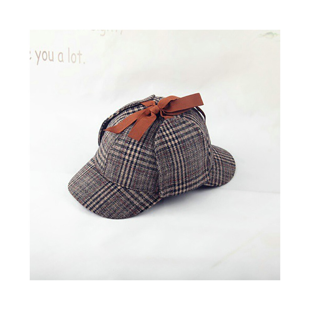(Gray) Sherlock Holmes Deerstalker Hat Tweed Check Cap