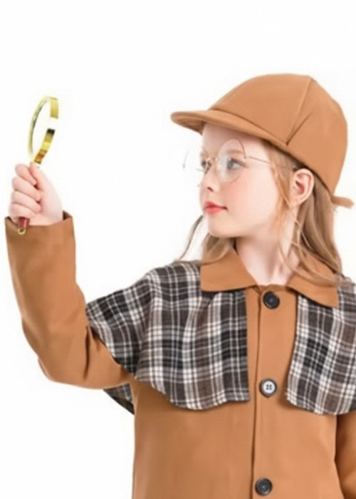 Kids Size Sherlock Holmes Fancy Dress Detective Hat and Prop Magnifying Glass