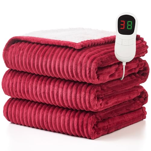 Bedsure Electric Blanket Heated Throw - 6 Heat Levels & 10 Timer Settings, Ultra-Soft Flannel & Sherpa Fast Heating Throw, 130x160cm, Overheat Protection, Red