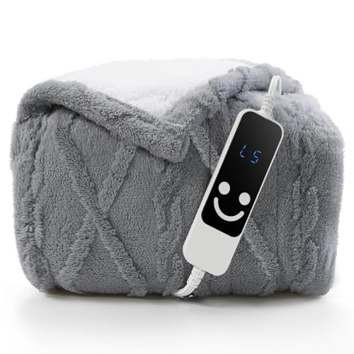 Hapiclody Heated Throw Blanket 127x152cm, Electric Blanket Throw with 5 Heating Levels & 12 Hours Auto Off,Flannel to Sherpa Super Cozy Heated Blankets for Bedding Sofa Machine Washable,Gray