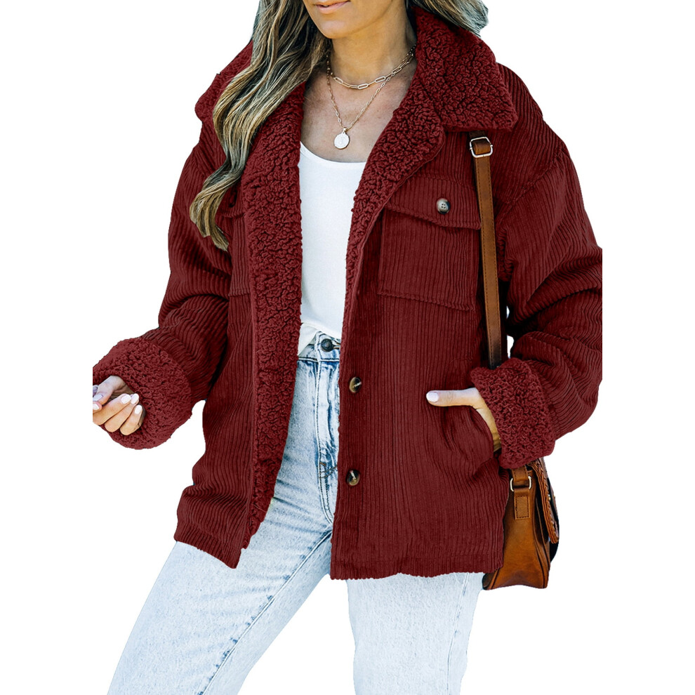 (red, S) Chase Secret Corduroy Sherpa Jacket for Women Button Down Fleece Collar Winter Warm Coat