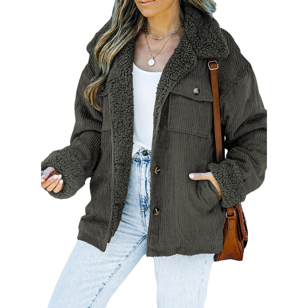 (gray, S) Chase Secret Corduroy Sherpa Jacket for Women Button Down Fleece Collar Winter Warm Coat