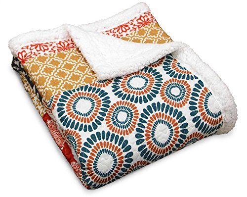 Christmas Patchwork Soft Warm Cosy Sherpa Fleece Flannel Throw Blanket