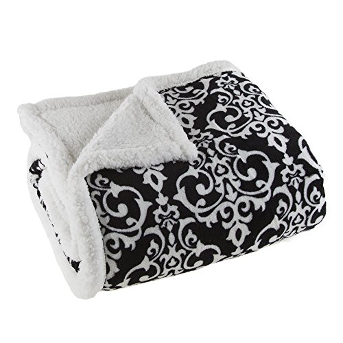 Lavish Home Reversible Fleece Blanket - 50-Inch x 60-Inch Machine-Washable Sherpa Throw - Cozy Blanket for Couch, Chair, or Bed (Black/White)