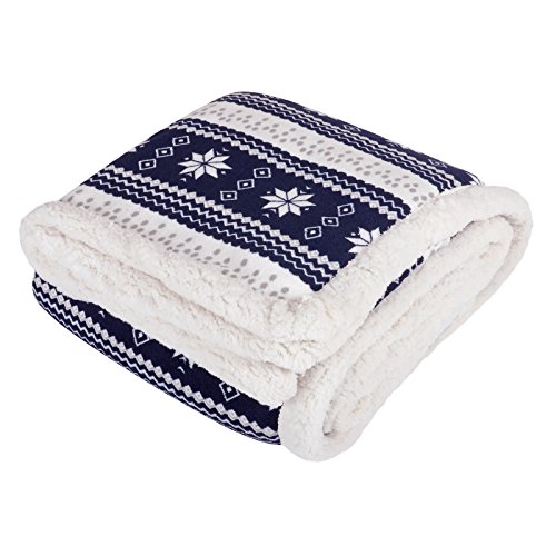 Micro-Pro Navy Snowflake Design Luxury Fleece Blanket Soft Sherpa Sofa Bed Throw 130x160cm