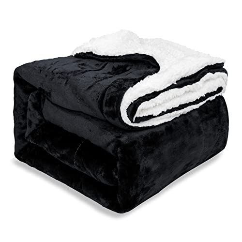 EHC King Size Sherpa Flannel Fleece Throw Blanket - Fluffy Soft Thick Microfiber Solid Warm Blankets for Bed and Couch, Black, 200 cm x 240 cm