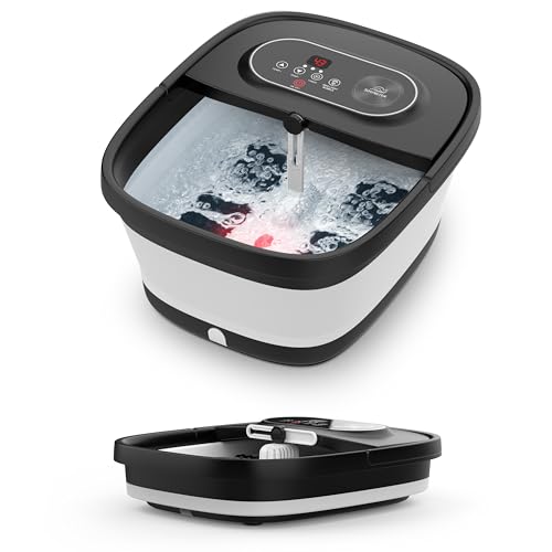 Snailax Foot Spa Massager with Adjustable Heat, Infrared, Bubble, Foldable Foot Bath with 8 Soothing Shiatsu Massage Rollers, Grinding Stones, Smart Timer&Keep Warm Function