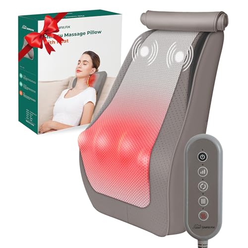 Snailax Back Massager with Heat, Shiatsu Neck Back Massager for Pain Relief, 4D Kneading Deep Tissue Massage Pillow, Perfect for Office and Home Use, Gifts for Man Women