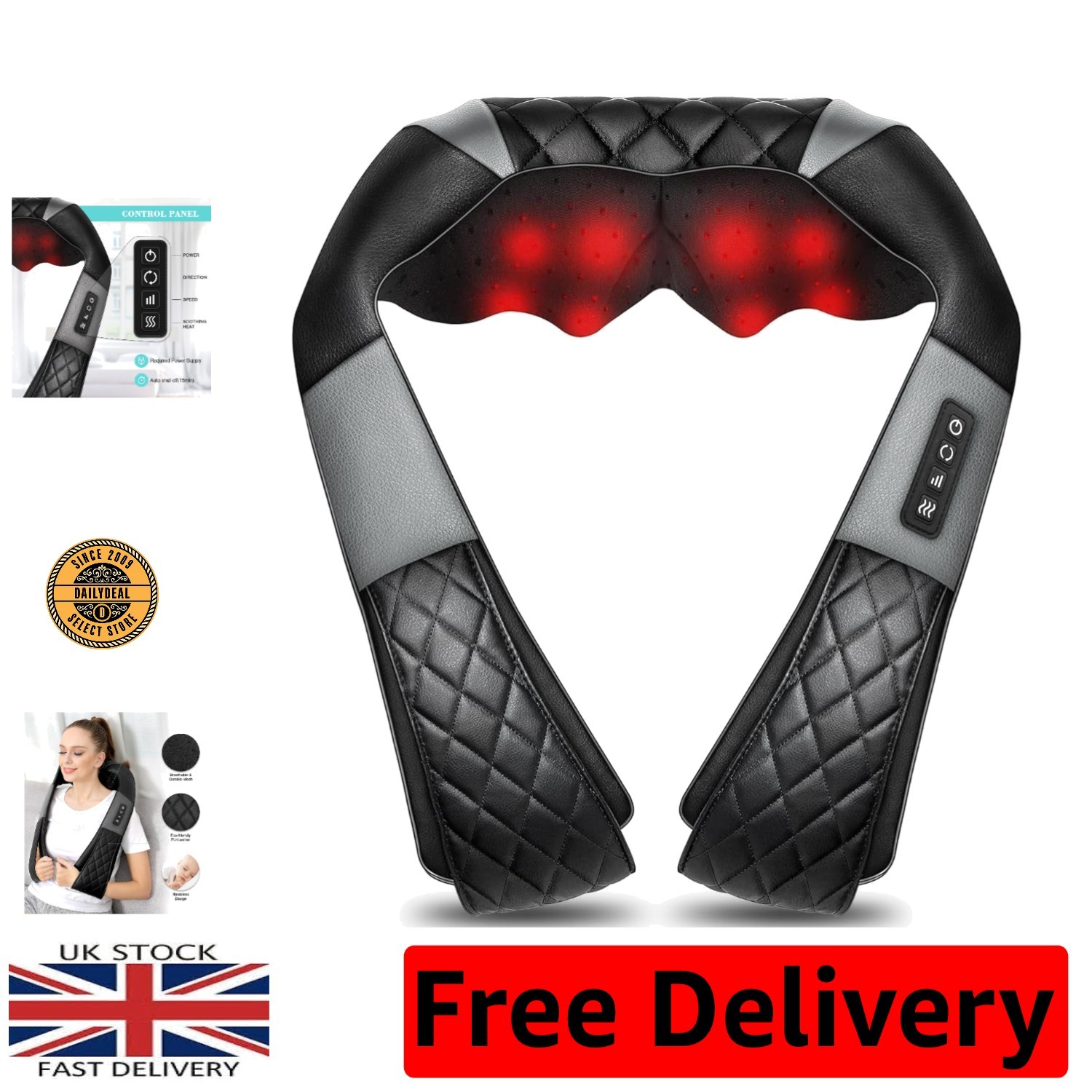 Black Shiatsu Back Neck Massager Electric Shoulder Massager with Deep Heat UK
