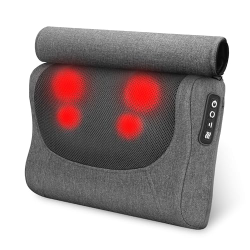 Shiatsu Neck and Shoulder Massager with Heat - Deep Kneading Pillow Massager for Neck Shoulder Lower Back Foot Muscle Pain Relief, Gifts for Men Women
