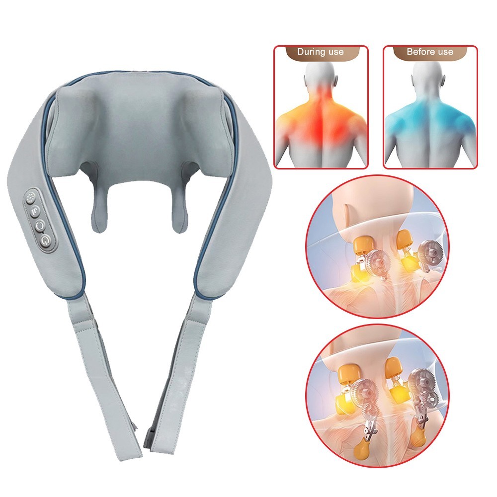 Shiatsu Neck Shoulder Massager Deep Kneading Tissue Massage Muscles Pain Relief